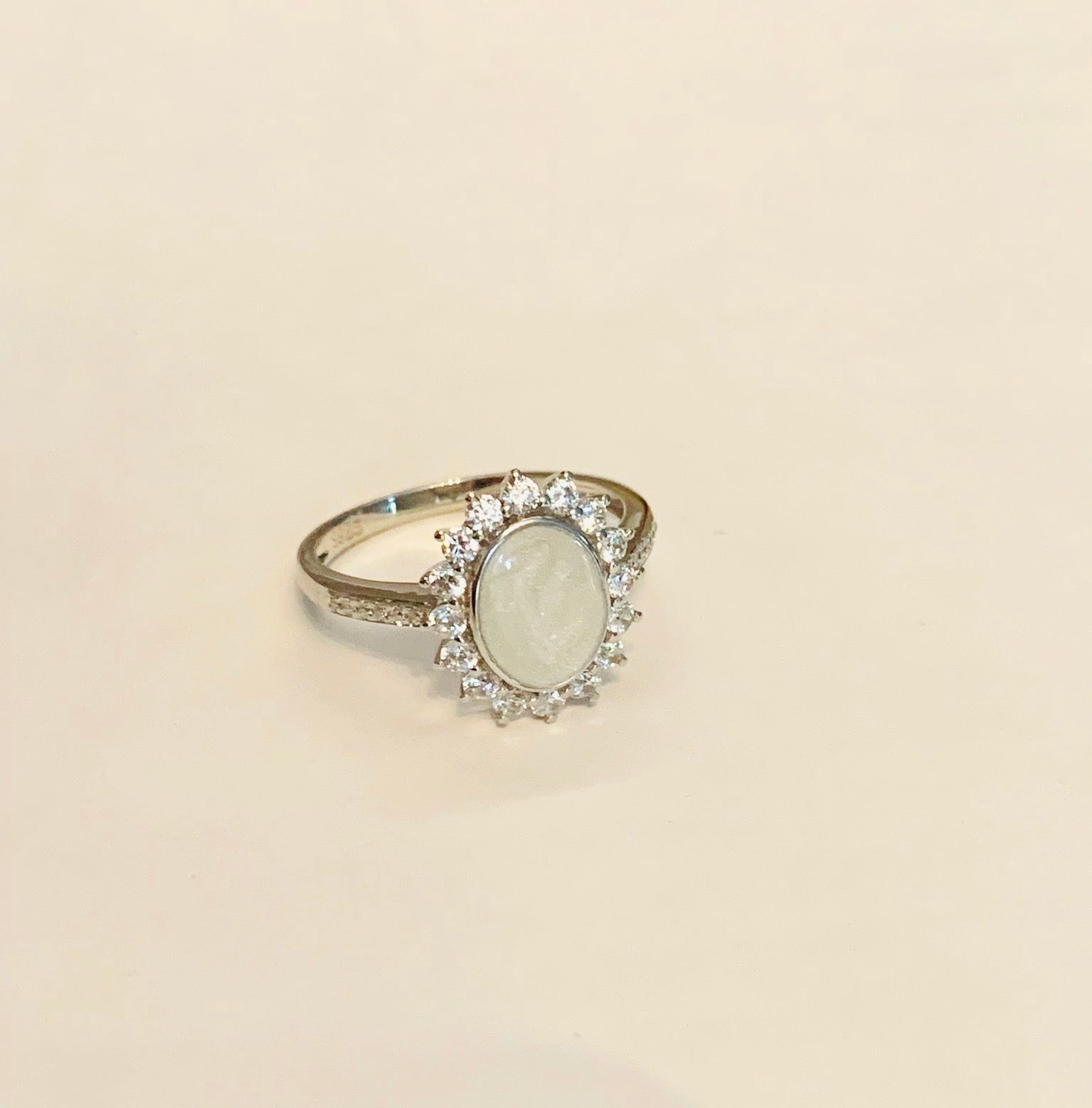 -Deze ring word standaard met moedermelk, bloemblaadje of haar/vacht geleverd, zie toevoegingen bij de extra opties.